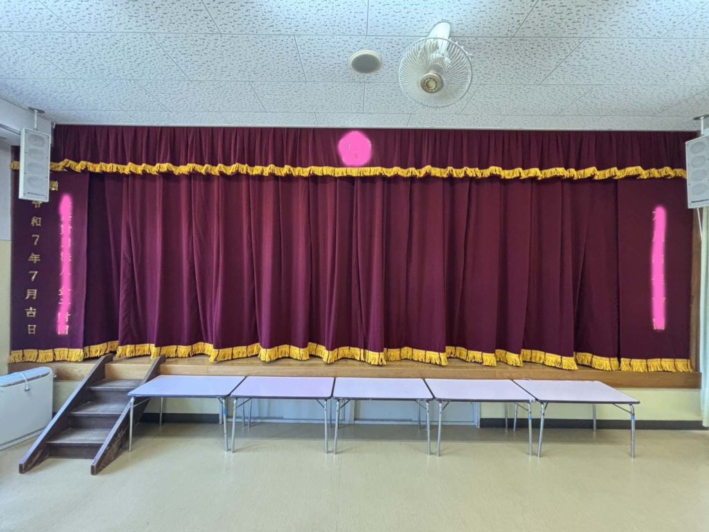 昭和57年に寄贈された年代物の舞台幕です