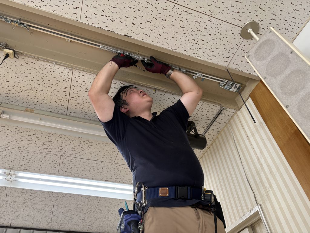 舞台幕が古くなりまた電動の開閉装置もうまく作動しなくなったとのご相談をいただいていました